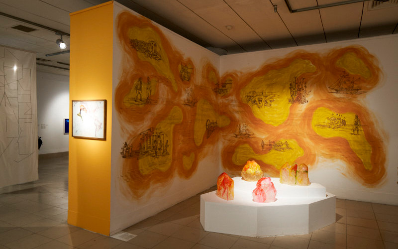 Al Mamoon works with drawings, paintings, kinetic sculptures and installations, addressing issues of knowledge, history and identity. Constructing complex experiences, he is interested in deconstructing the collective memory of his homeland of Bangladesh. He focuses on the ways in which colonialism de-humanised, exploited and dislocated people from their own land, culture and tradition, separating them from traditional systems of knowledge.