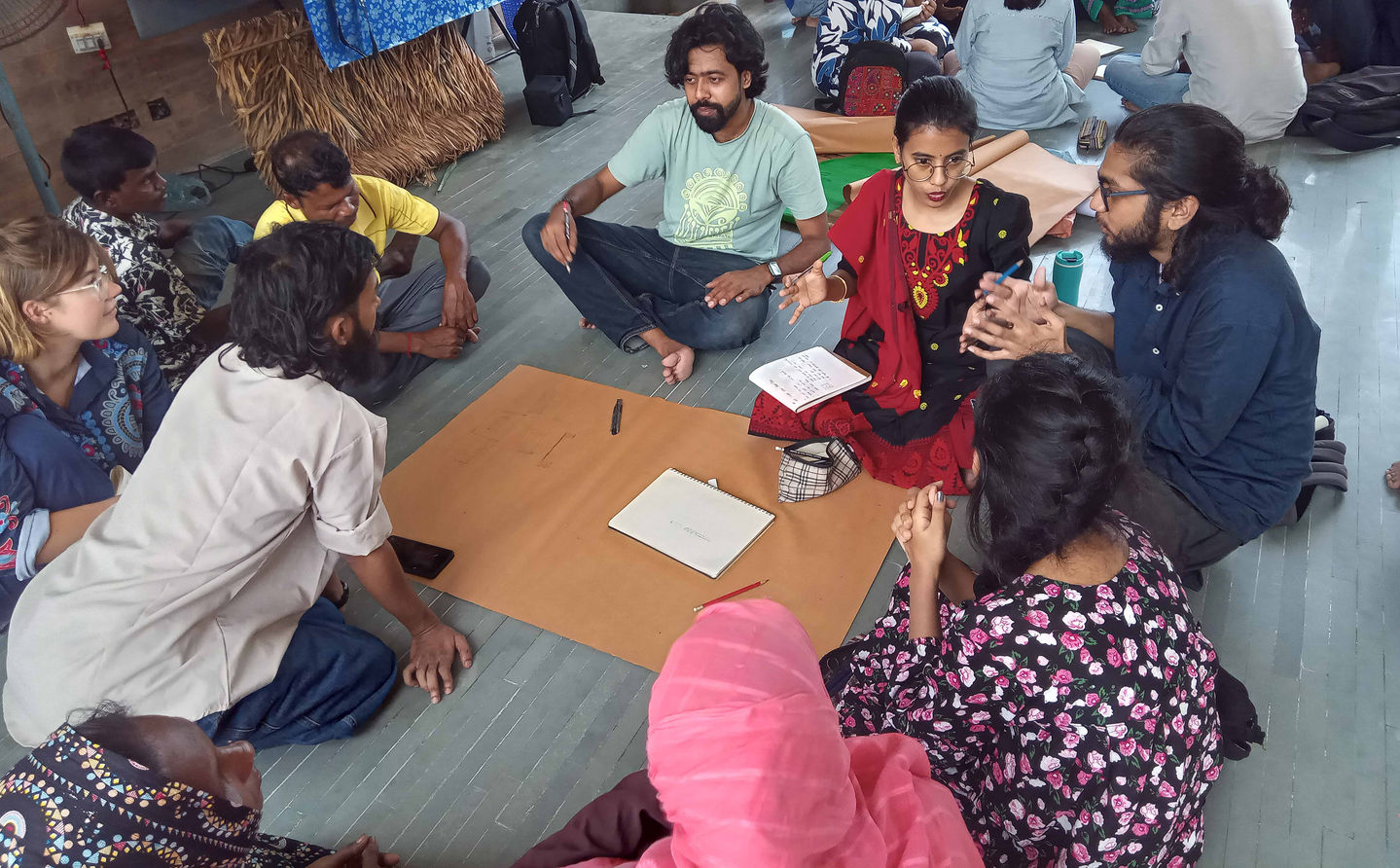 Crafting Togetherness fosters collaboration between artisans and architecture students through workshops and knowledge exchanges, guided by Rizvi Hassan. Taking place at Srihatta and supported by the British Council's Climate Futures: South Asia Grant 2025, the project focuses on sustainable building practices and explores Sylhet’s indigenous techniques using bamboo, mud, and leaves. These exchanges will shape the design and construction of a biodegradable, zero-waste cultural space. After completion, the space will continue to host workshops and performances on sustainability, inspiring eco-friendly practices in the arts and strengthening community connections through shared learning.