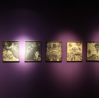 Ganesh works across media including drawing, installation, animation, and prints. Her work draws from and deconstructs historical and mythological texts to queer the future of the iconic female figure. Her pictorial language is inspired by surrealism, expressionism, and South Asian visual culture, such as Kalighat painting and ACK comics.